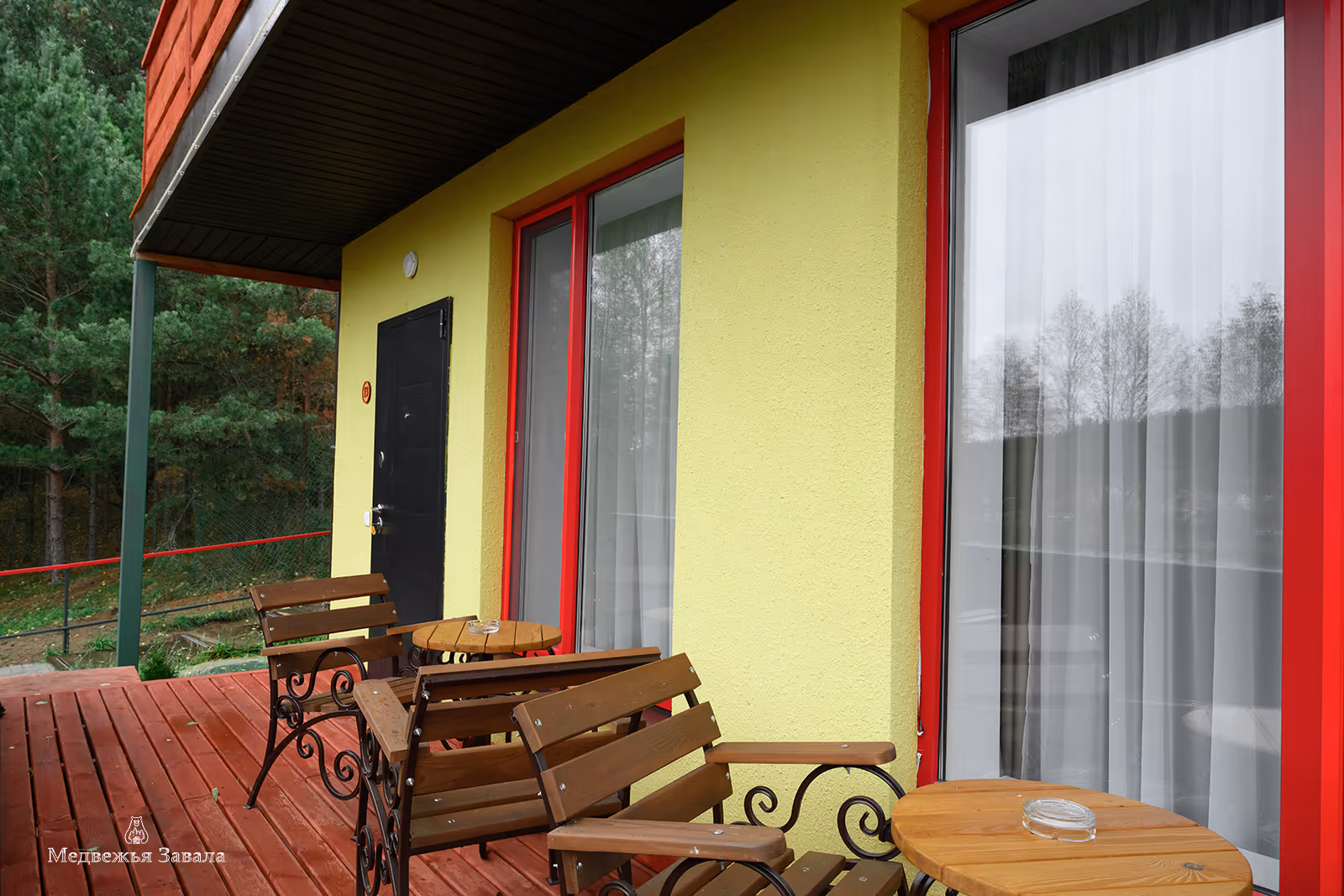 С отдельным входом, личным балконом. Видом на сосновый лес
